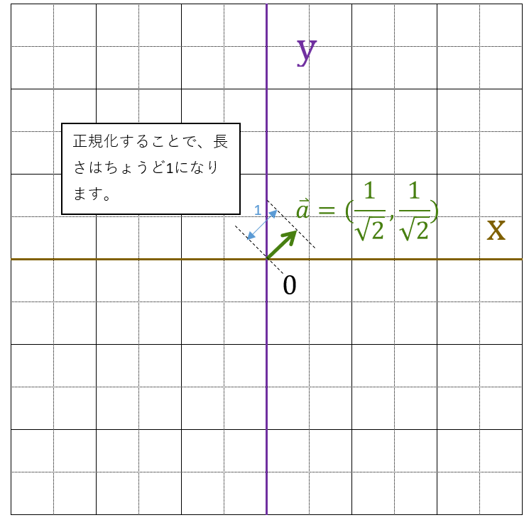 ベクトルの大きさを1にすることを、ベクトルの正規化と言います。