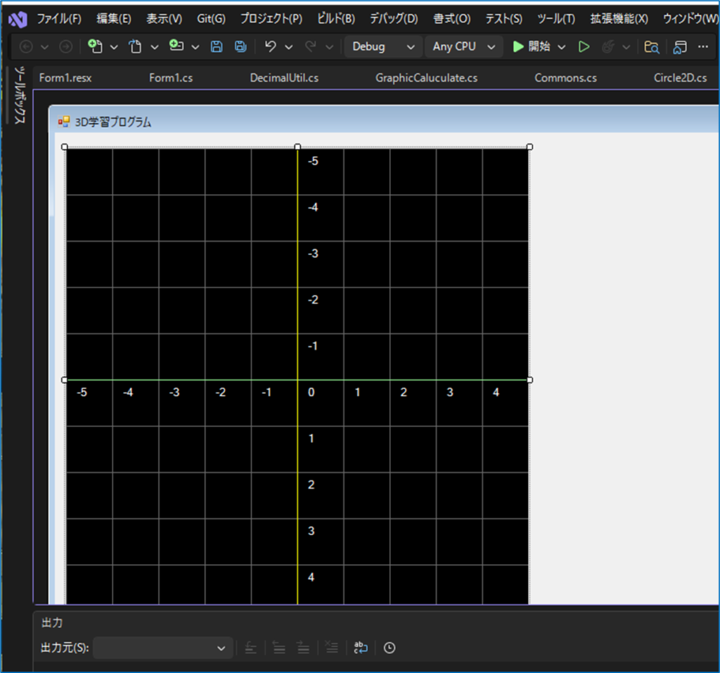 ツールボックスに追加した「グラフィック2Dコントロール」をフォーム画面に配置します。