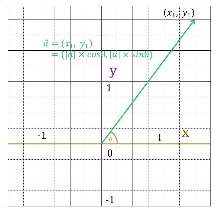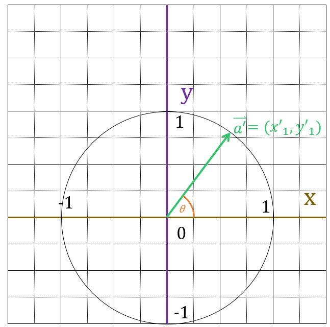 $|\vec{a}|\times \vec{a’} = (|\vec{a}|\times x’_1,\; |\vec{a}|\times y’_1) = (|\vec{a}|\times cos\theta,\; |\vec{a}|\times sin\theta) = \vec{a}$